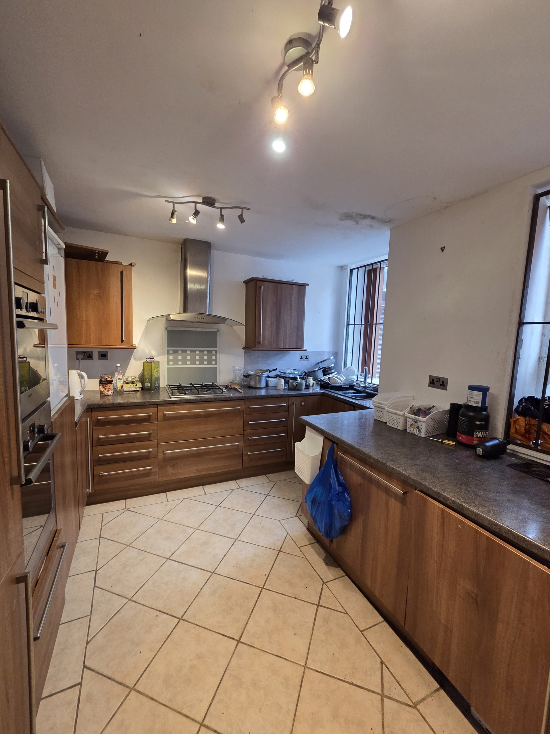 Kitchen13’3” x 10’9” (4.04m x 3.28m). Two double glazed windows to the rear, tiled flooring, a range of wall and base units with complimentary worksurfaces, gas hob, radiator, electric double oven, extractor hood, one and a half bowl sink and drainer unit, integral dishwasher, washing machine, dryer, fridge freezer and two ceiling light points.