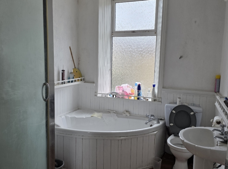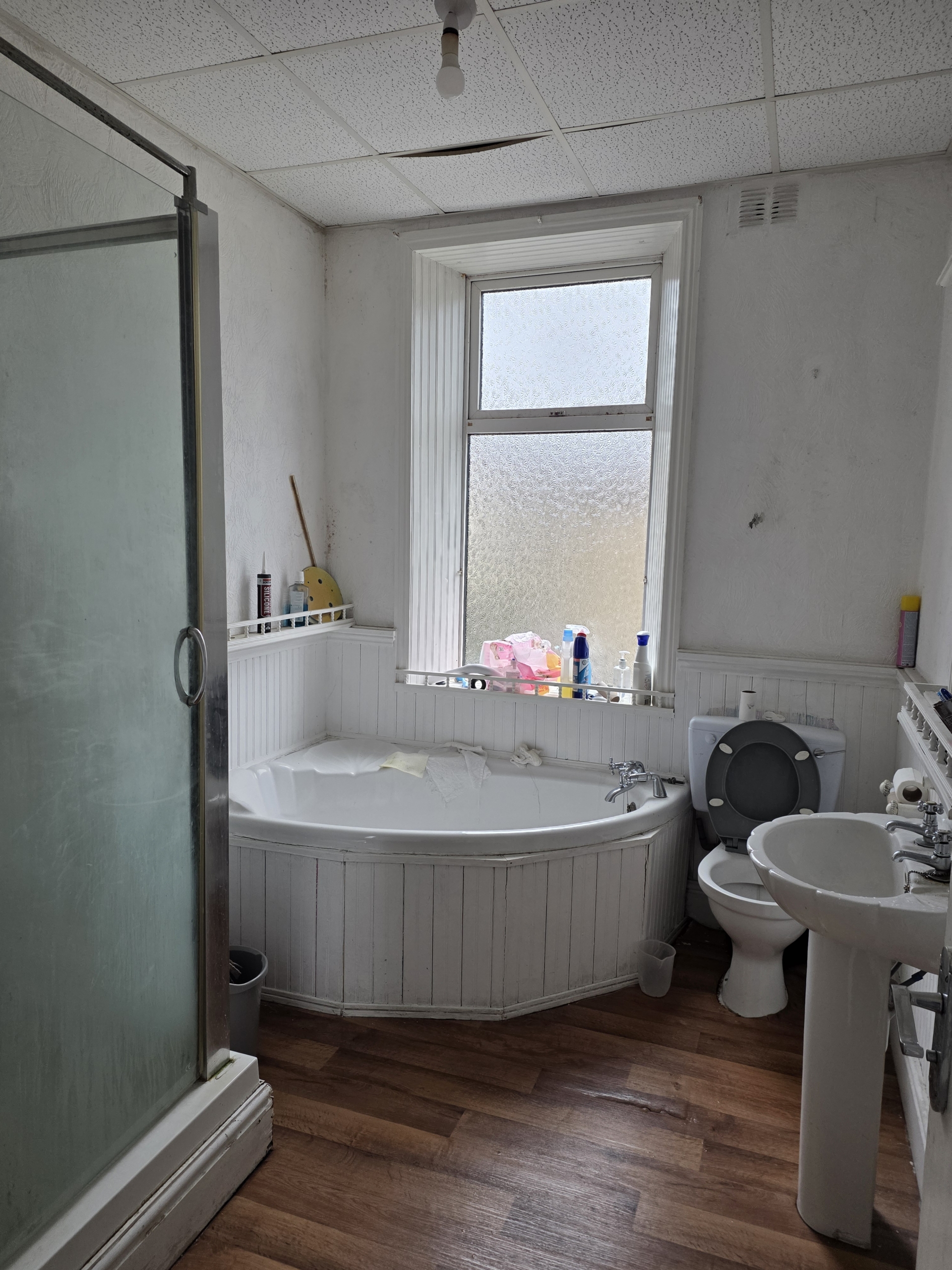 Bathroom Double glazed window to the rear, low level WC, pedestal wash hand basin, corner bath with mixer tap and shower attachment, shower cubicle, light point, radiator and built-in storage.