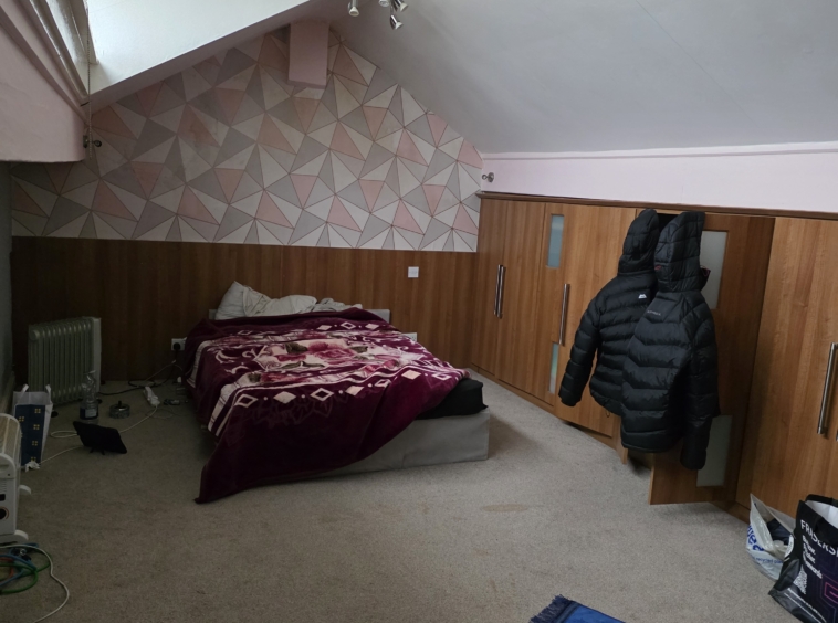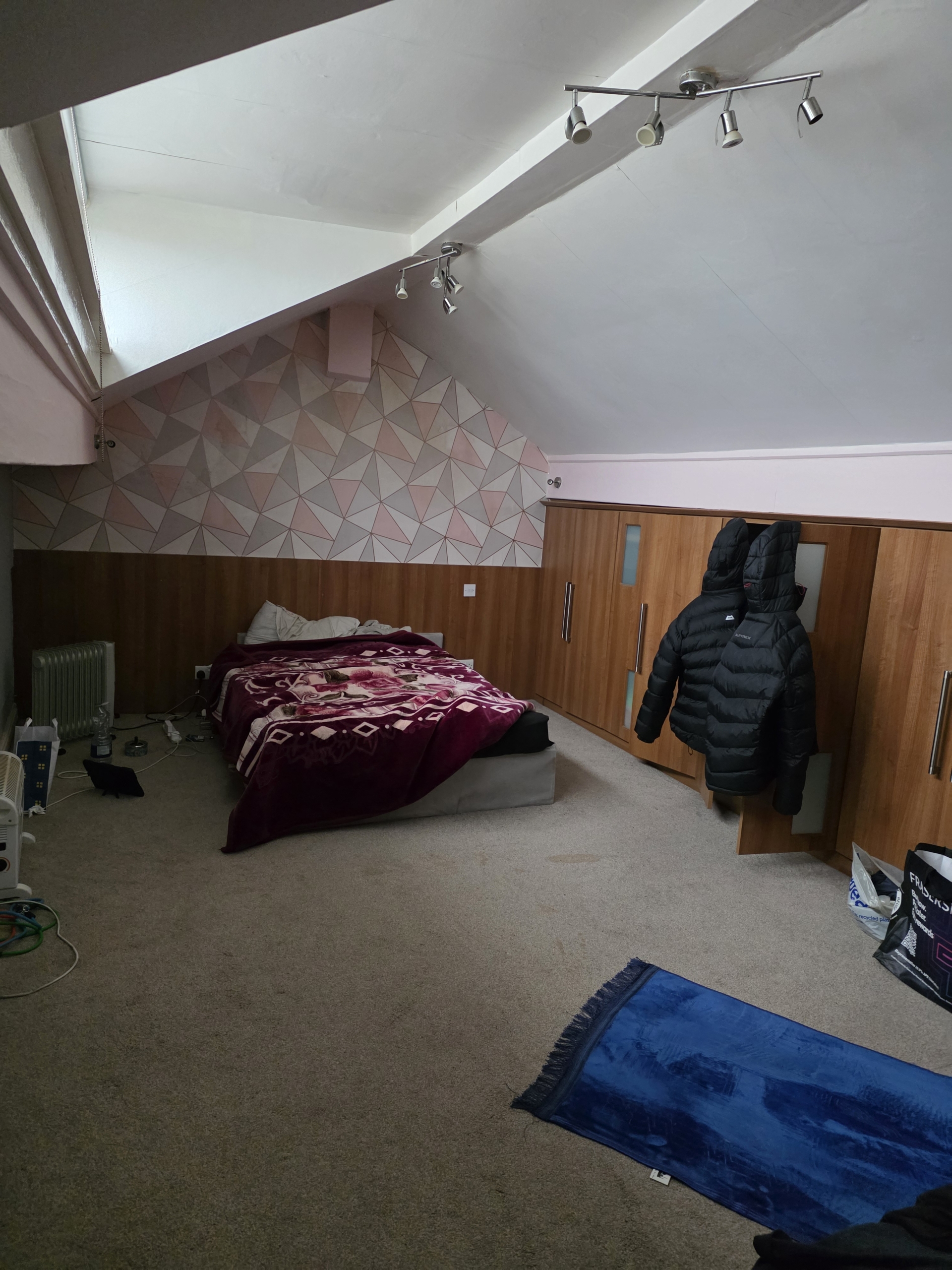 Bedroom Four18’9” x 13’3” (5.72m x 4.04m). Built-in wardrobes, light point, double glazed windows to the rear, eaves storage and radiator.